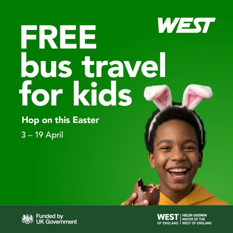 Getting out and about with the kids this Easter is even easier, with free travel for under 16’s on buses across Bristol from 3rd April to 19th April 🐰
