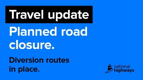 For info visit https://nationalhighways.co.uk/travel-updates/road-closure-report/